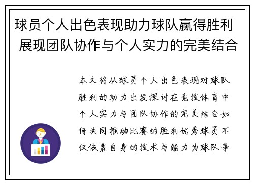 球员个人出色表现助力球队赢得胜...
